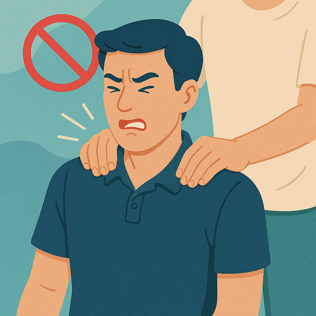 - ใช้นิ้วโป้งกดจุดกล้ามเนื้อไหล่