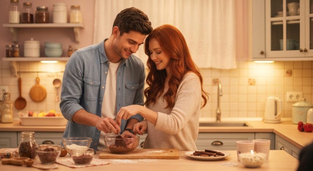 เช่น ทำเค้ก หรือช็อกโกแลตด้วยกัน เป็นกิจกรรมที่น่ารักและโรแมนติกมาก